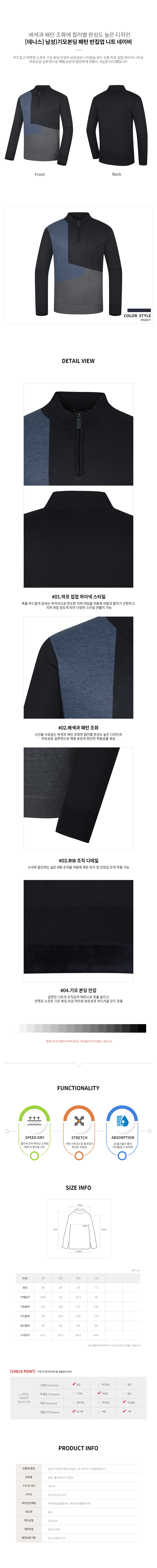 [데니스골프] 25FW신상 남성 기모본딩 패턴 반집업 니트 네이비_FAQFMSP617